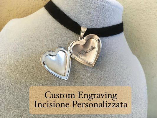 Collana Collarino Velluto Medaglione Cuore - Ciondolo Portafoto Locket Choker - Acciaio Inossidabile - Incisione Personalizzata