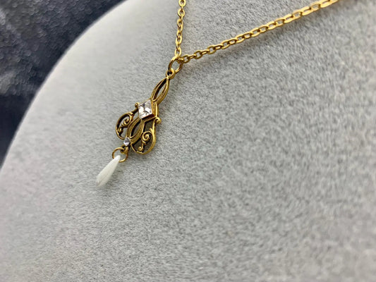 Collana "Rose" in Ottone Dorato con Pendente in Vetro a forma di Daga e Cristallo Rombo - Stile Art Deco Style - Versione Piccola