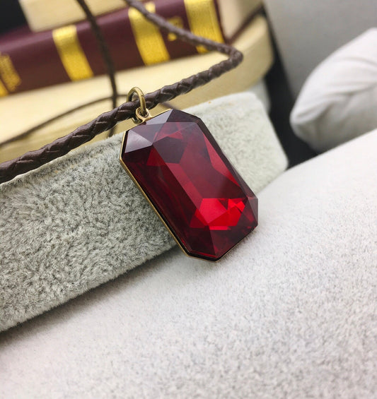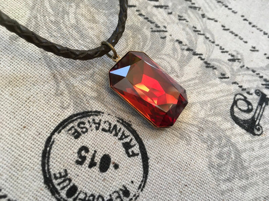 Collana Morfeo Sogno Pendente Ottagono Ottone con Cristallo Rosso Siam Vetro Aurora
