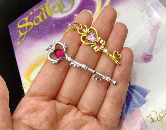 Collana Sailor Moon Chibiusa Chiave del Tempo Ciondolo Argento Sterling 925 Cristalli Cubic Zirconia