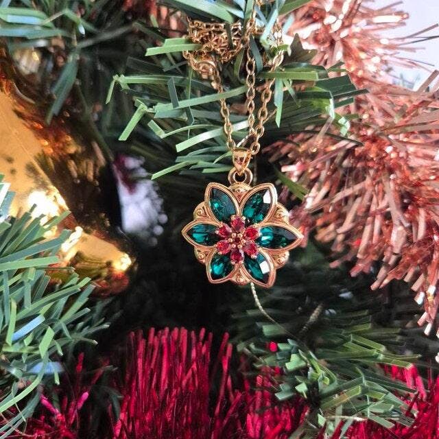 Cristalli verde smeraldo Preciosa® per i petali del fiore + cristalli cubic zirconia rossi per il piccolo fiore centrale centrale