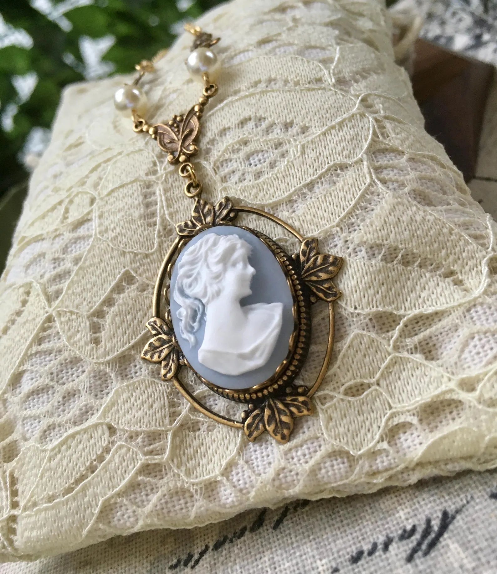 Collana Vampire Katherine Pierce Cameo Azzurro Design #3